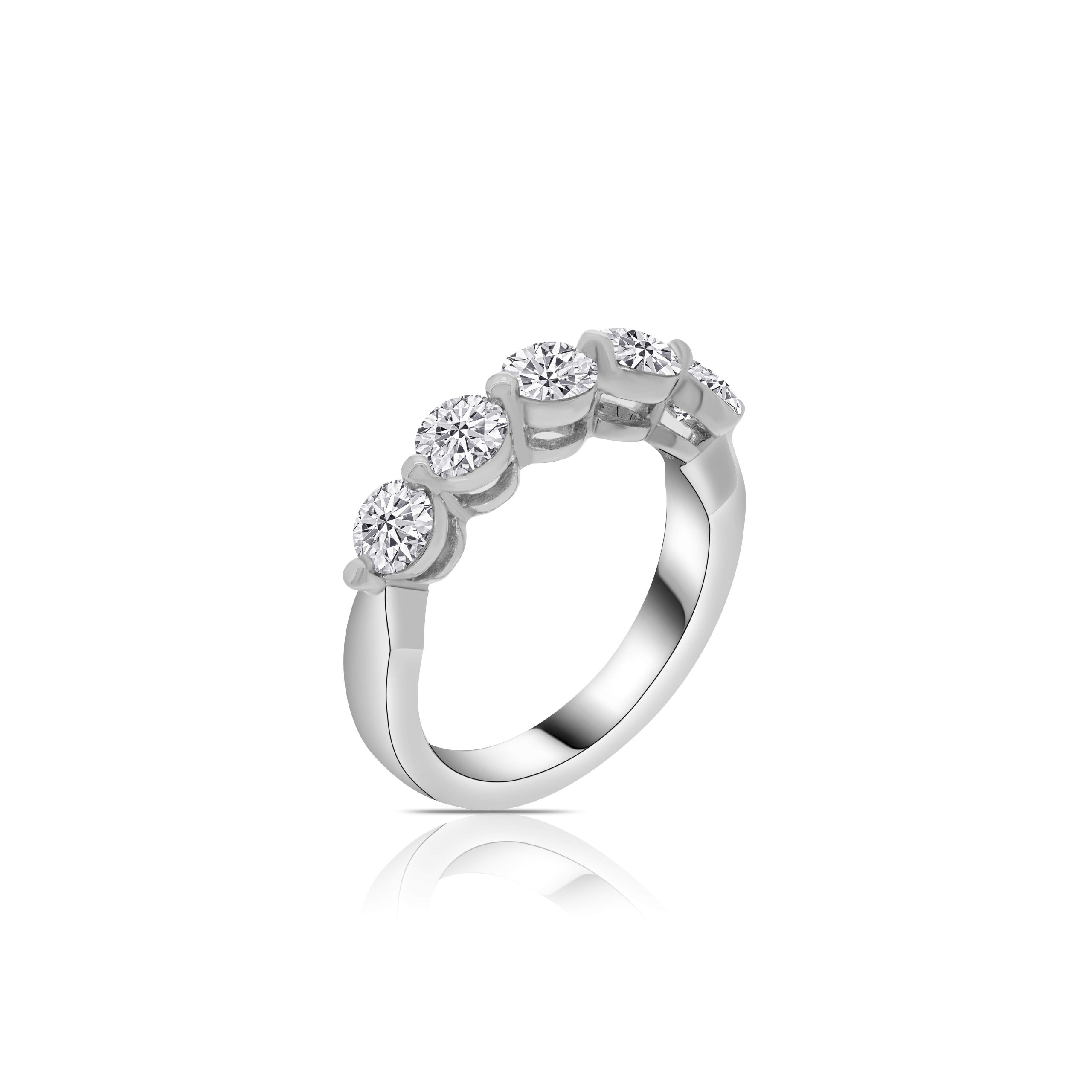 Elevate your elegance with our exquisite 14 karat white gold shared prong diamond band, adorned with a stunning 1.58cts. of round brilliant cut diamonds. This timeless piece sparkles with unmatched radiance, each diamond meticulously set to perfection. The shared prong design ensures a seamless and continuous display of brilliance, symbolizing an everlasting connection. Whether it’s a symbol of love, commitment, or a luxurious addition to your jewelry collection, this band is a testament to your refined taste and enduring style. Discover the allure of this meticulously crafted masterpiece today.