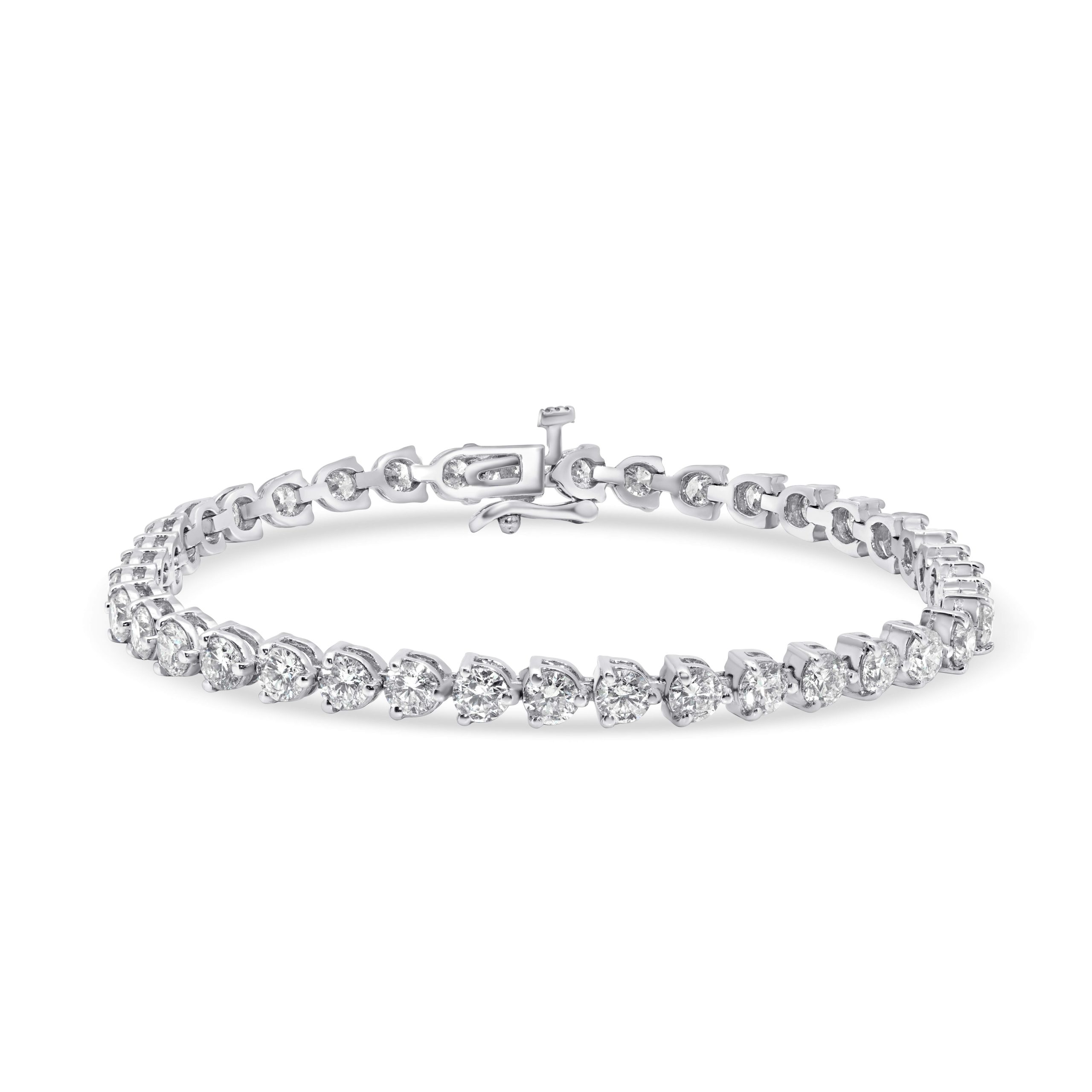 Explore elegance with our exquisite 14 karat white gold diamond tennis bracelet, adorned with a stunning 7.74cts. of meticulously mounted round brilliant cut diamonds. This timeless piece seamlessly blends sophistication and glamour, making it the perfect accessory for any occasion. Elevate your style with the brilliance of these carefully selected diamonds, set to dazzle and captivate. A symbol of enduring beauty, this tennis bracelet is a statement of refined luxury that will grace your wrist with unparalleled radiance.
