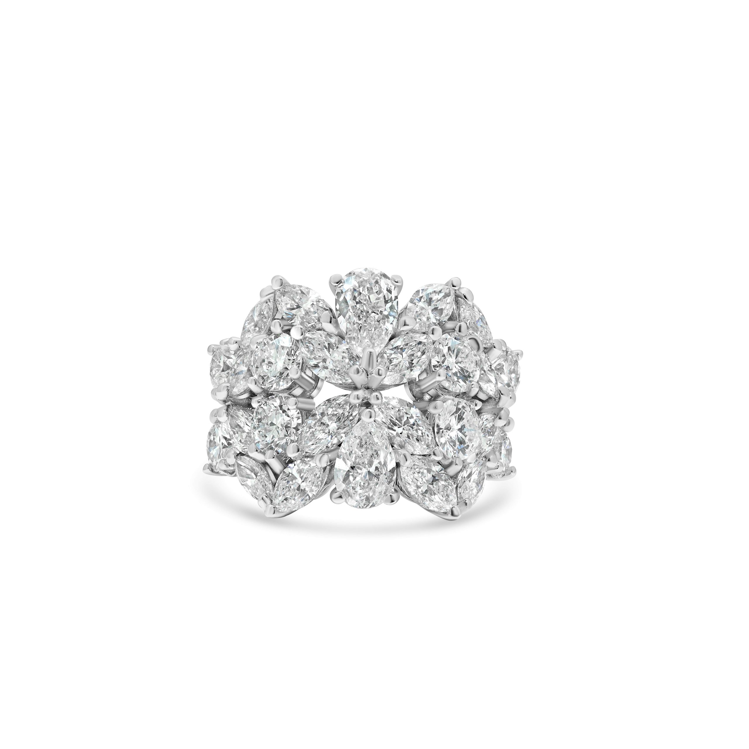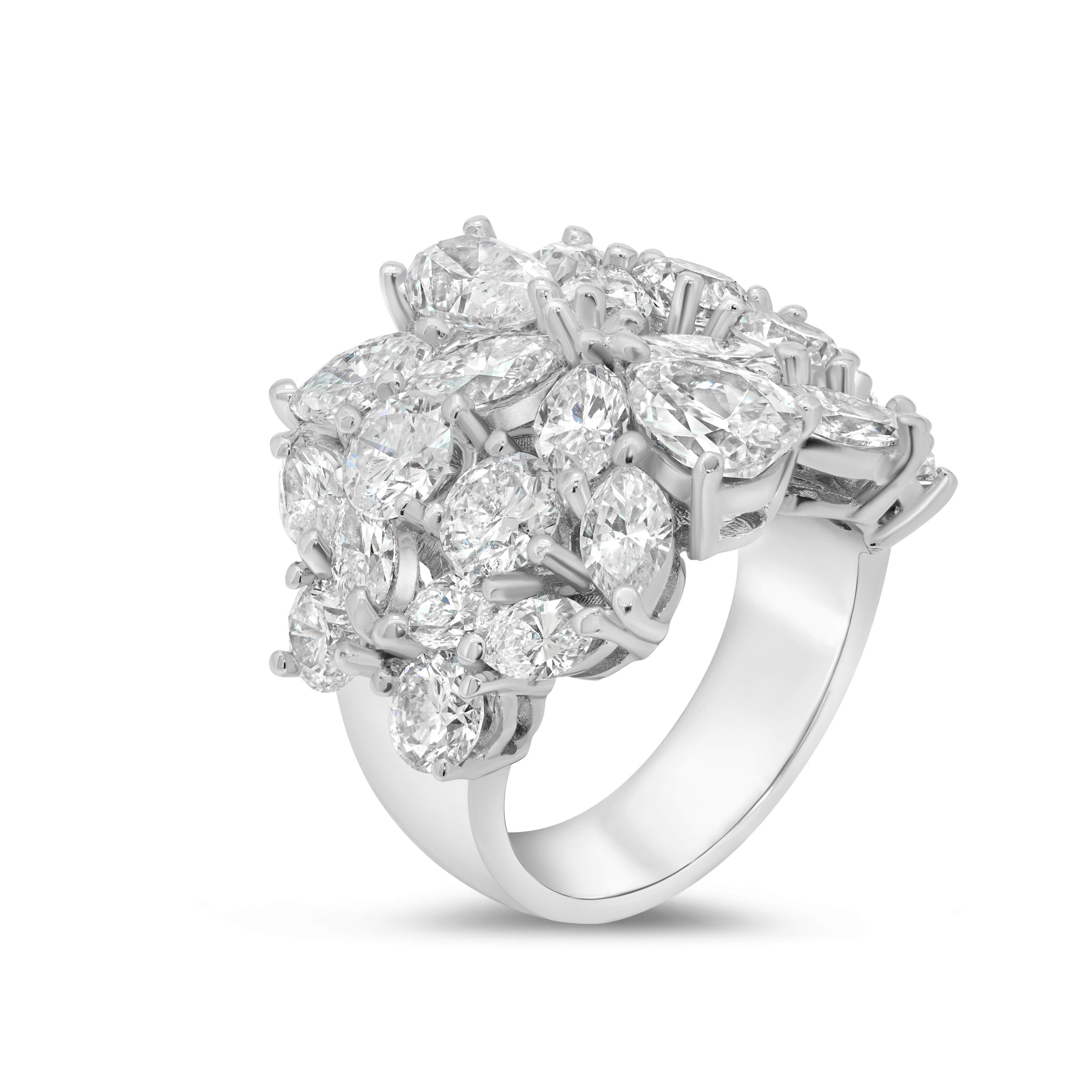 Dazzle in sophistication with our Harry Winston-inspired cocktail ring, a masterpiece in 14 karat white gold adorned with a breathtaking total combined weight of 8.72cts. of round, pear-shaped, and marquise cut diamonds. The meticulously arranged diamonds create a mesmerizing display of brilliance and artistry, reminiscent of the timeless elegance associated with the iconic Harry Winston style. Elevate your evening ensemble with this statement piece that captures the essence of luxury and refinement, showcasing the beauty of each carefully selected diamond in a harmonious dance of shapes and sparkle.