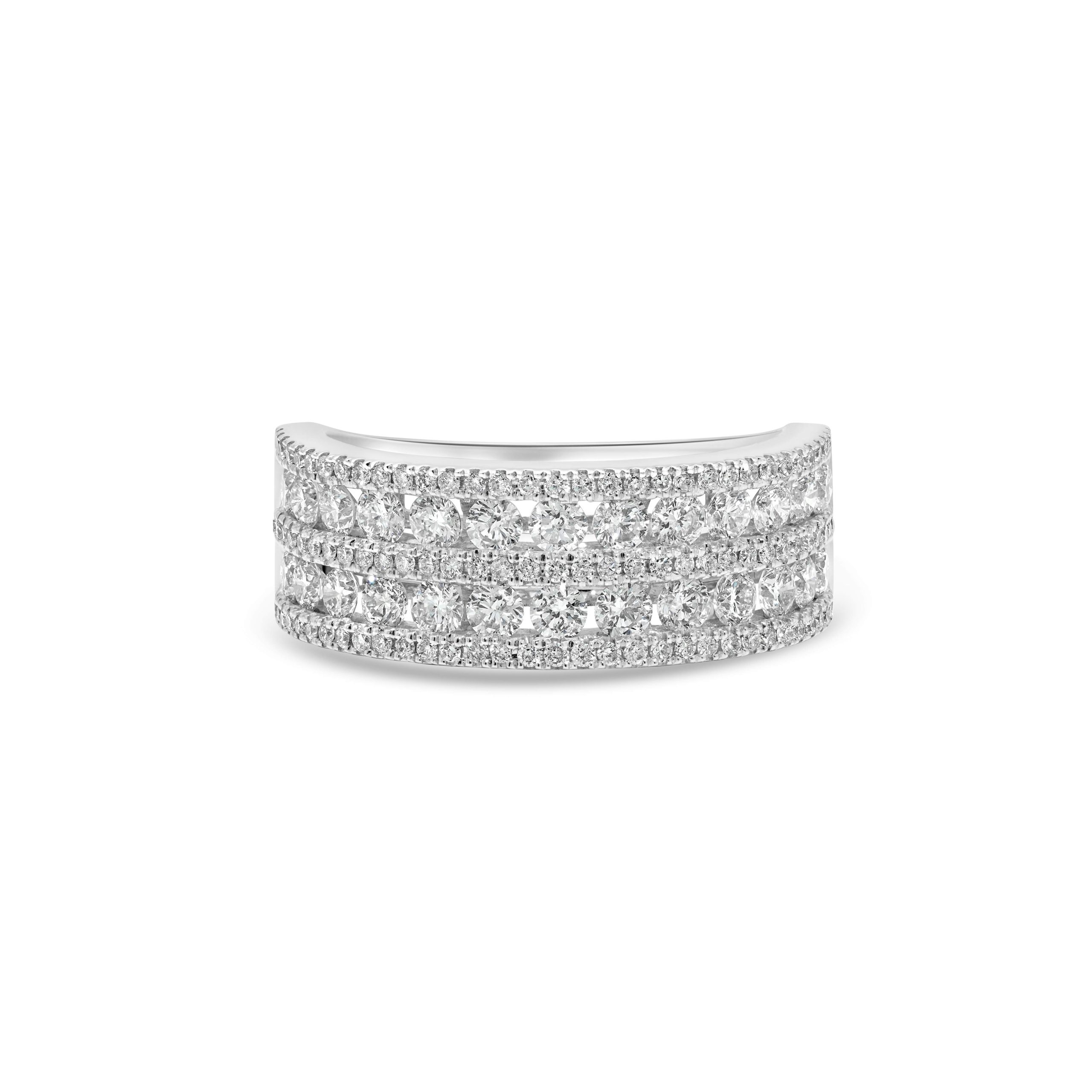 Introducing our 14 Karat White Gold Diamond Cocktail Ring–a true embodiment of modern elegance. This exquisite piece features a total of 1.30cts. of round brilliant cut diamonds, set in a contemporary design that’s as sophisticated as it is stylish. With clean lines and a minimalist aesthetic, this ring is the perfect choice for those who appreciate the fusion of classic beauty with a modern twist. Whether you’re wearing it to elevate your everyday style or as a statement piece for special occasions, this ring’s exquisite craftsmanship and timeless appeal will make it a cherished addition to your collection. Discover the epitome of modern sophistication and make a statement with this stunning diamond cocktail ring.