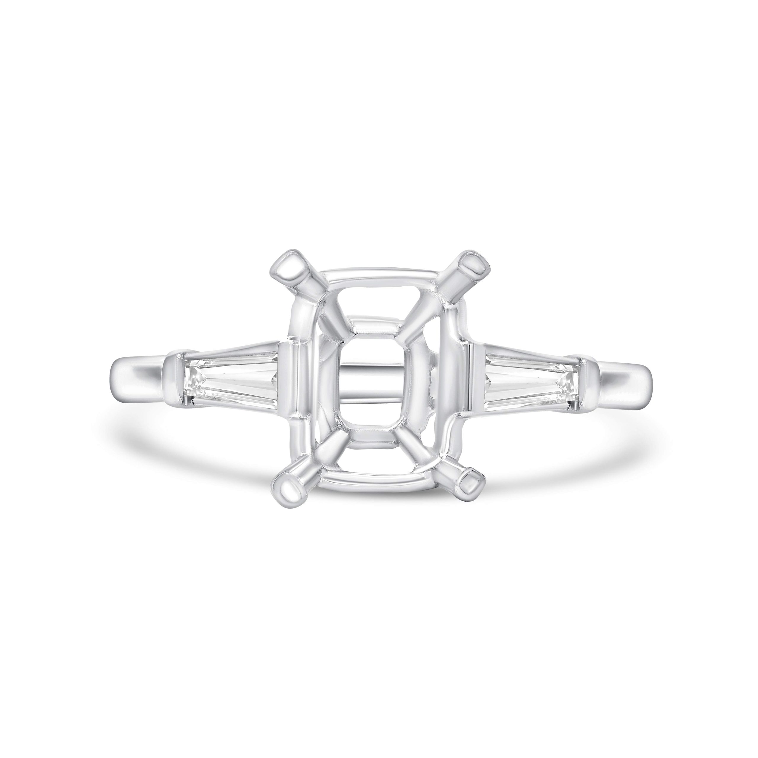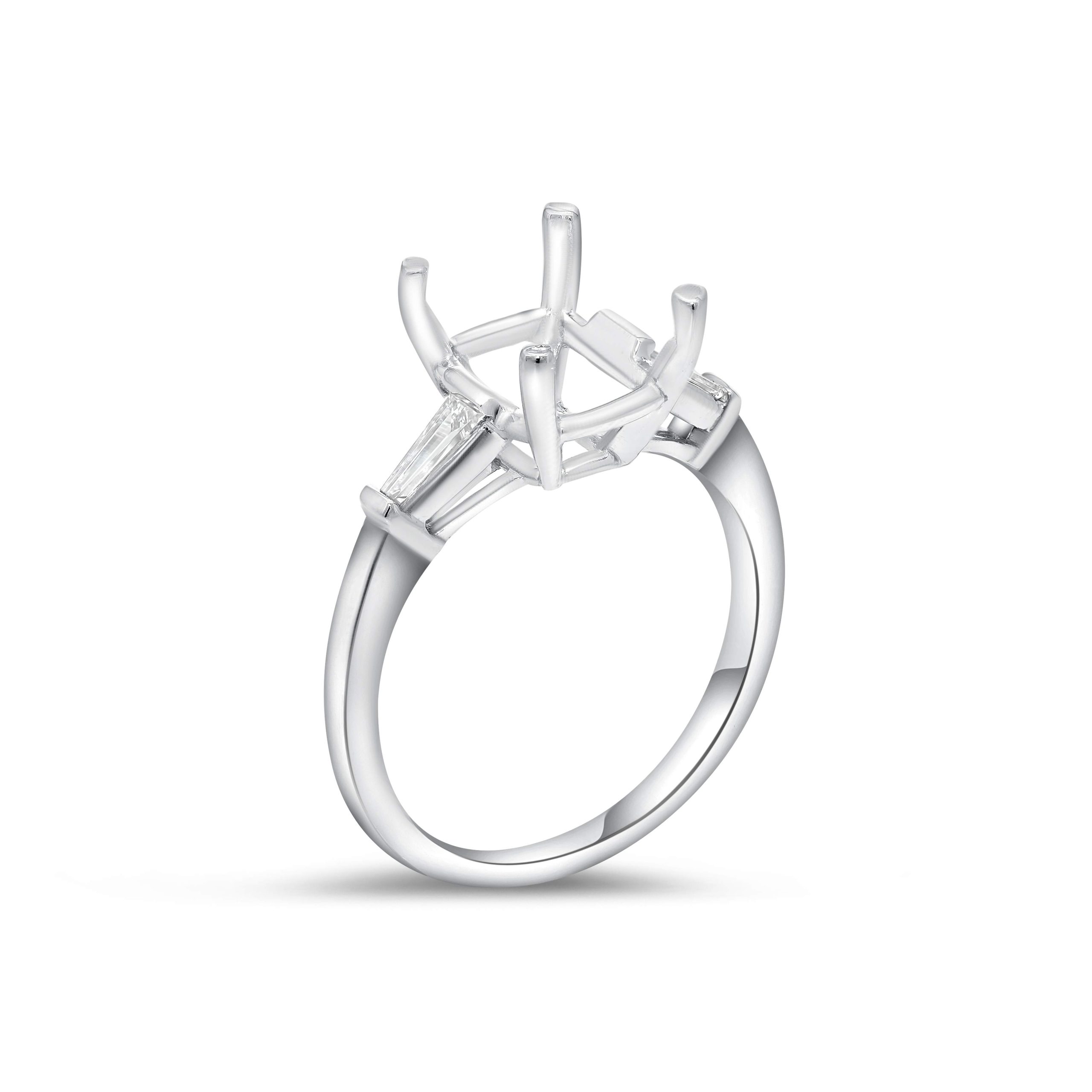 Discover elegance with our exquisite 14 karat white gold three piece diamond setting ring. This timeless piece features two tapered baguettes, totaling .26cts., gracefully adorning either side of the open centered ring. Elevate your style with this stunning symbol of enduring beauty and sophistication.