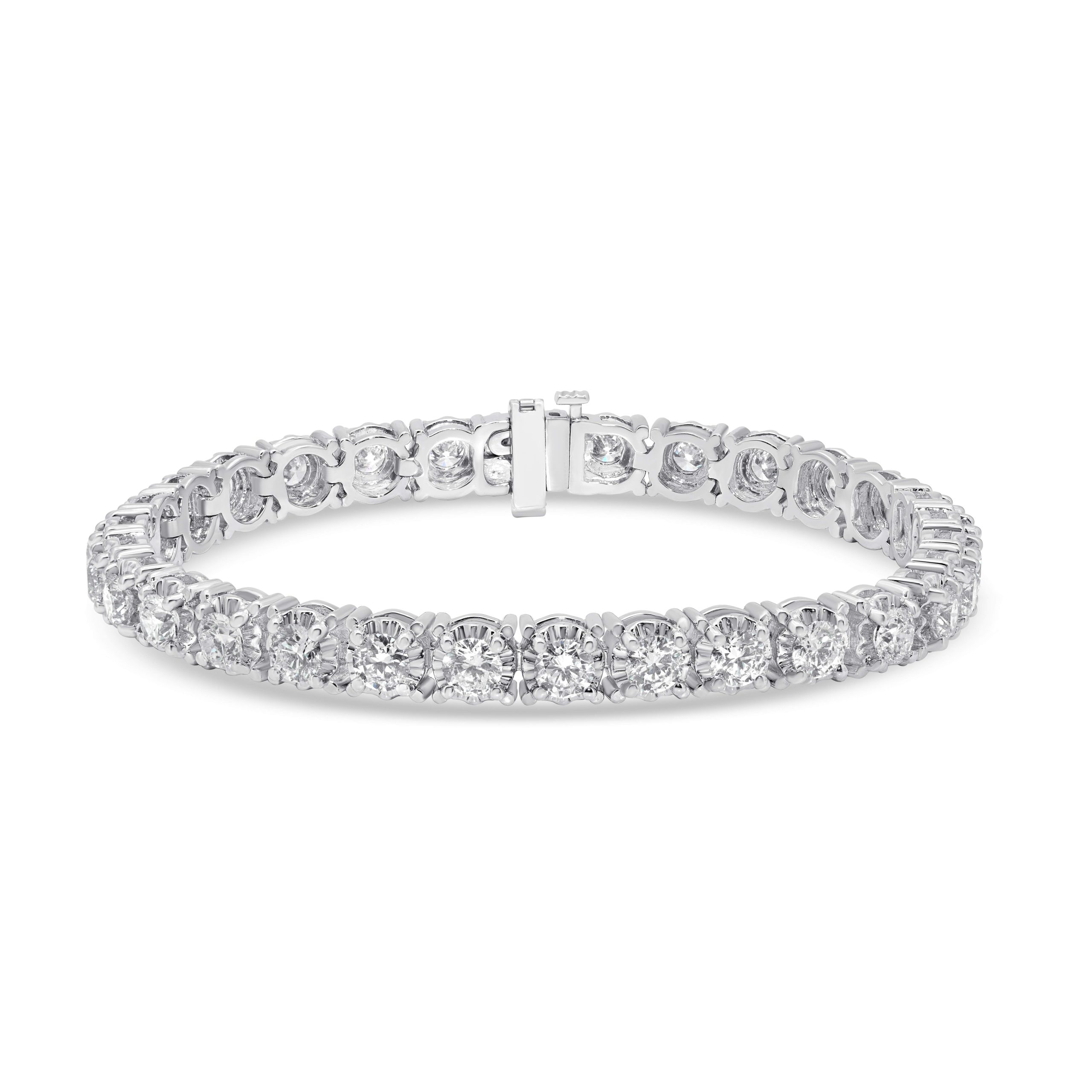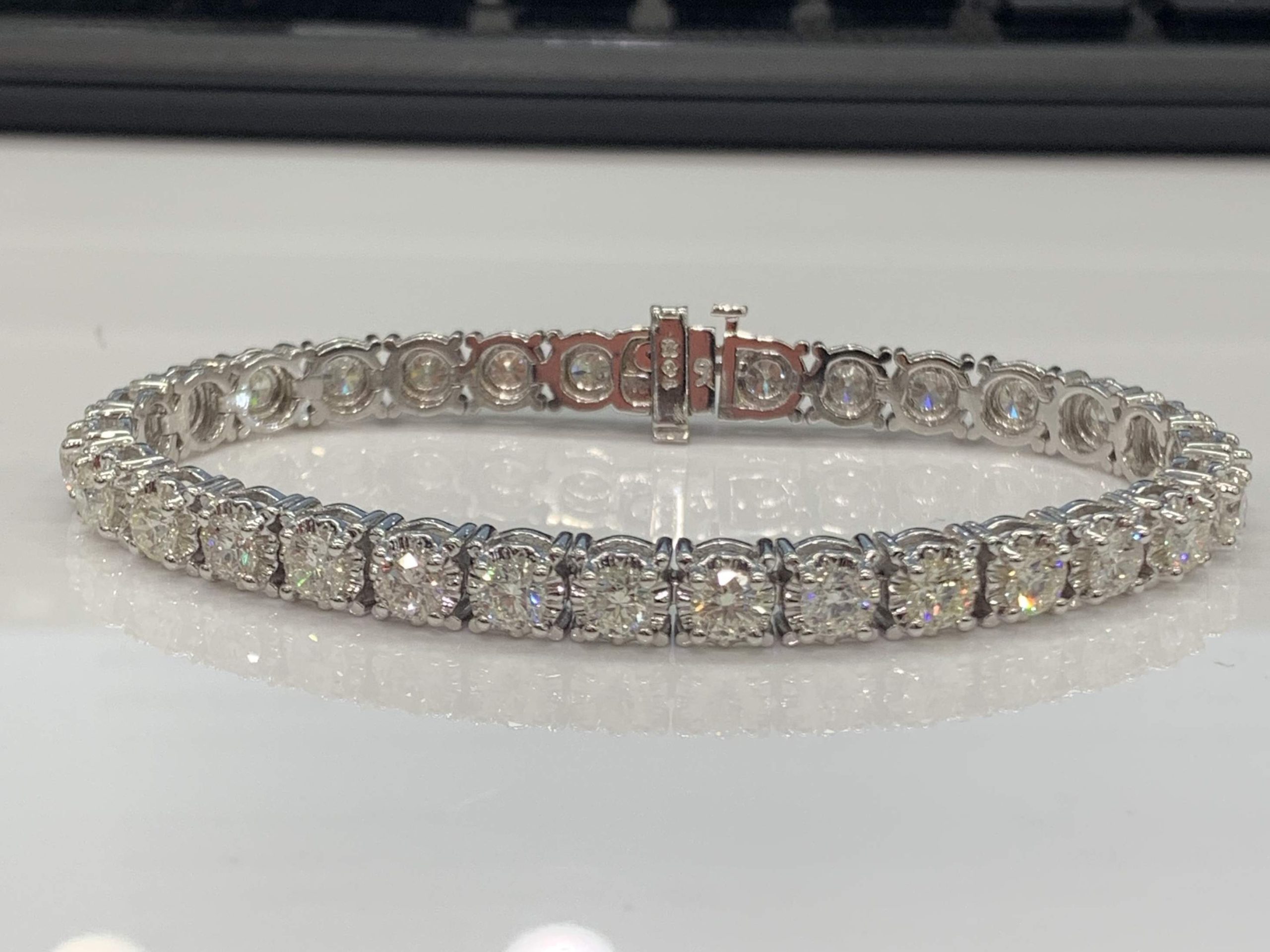Immerse yourself in the brilliance of our 14 karat white gold diamond tennis bracelet, boasting an impressive 9.14cts. of round brilliant cut diamonds. This extraordinary piece is a testament to sophistication and luxury, with each diamond meticulously chosen and expertly set to create a continuous river of shimmering beauty. The timeless allure of white gold enhances the radiance of the diamonds, making this bracelet a striking accessory for any occasion. Elevate your ensemble with the glamour and prestige embodied in this stunning arrangement of diamonds, showcasing a commitment to refined style and enduring elegance.