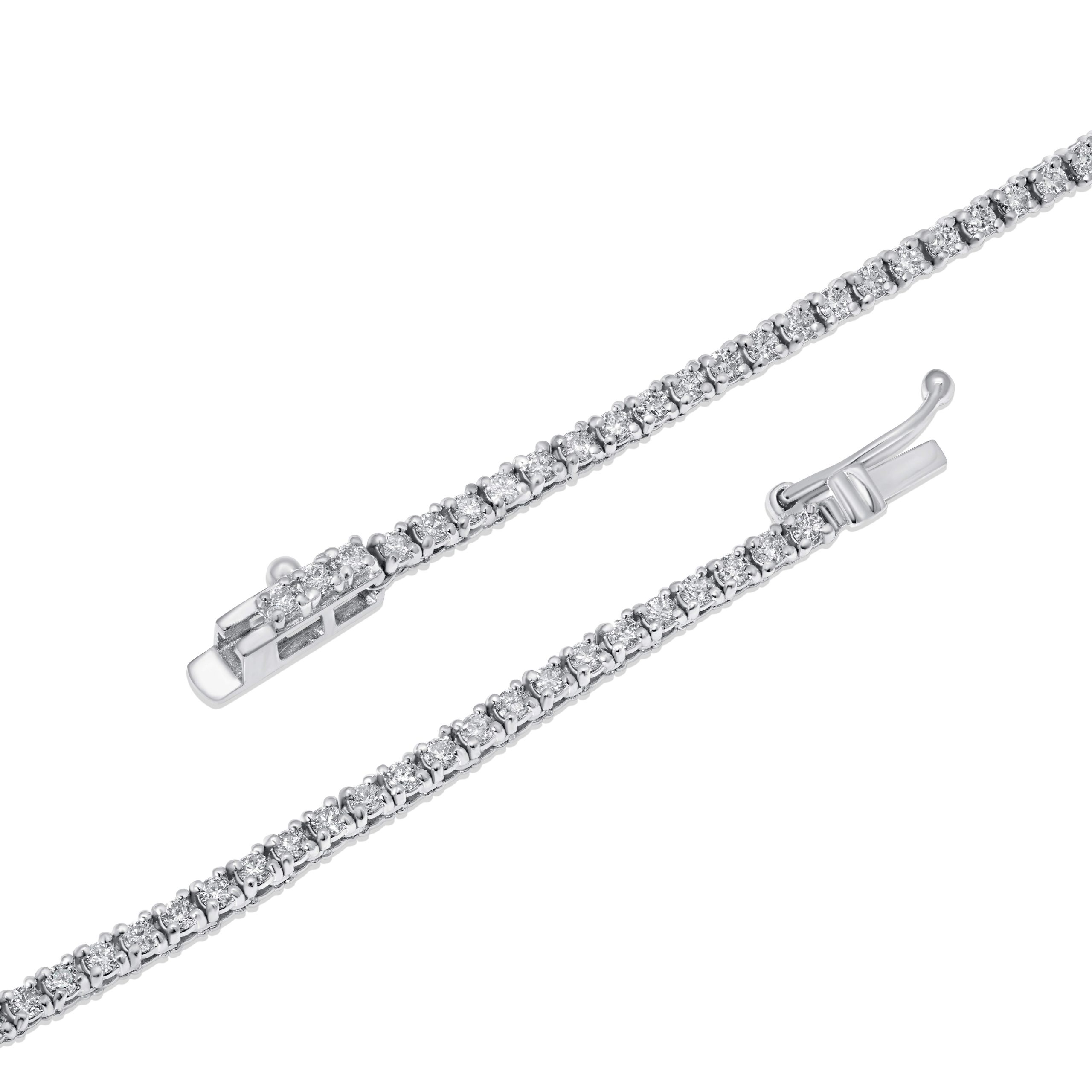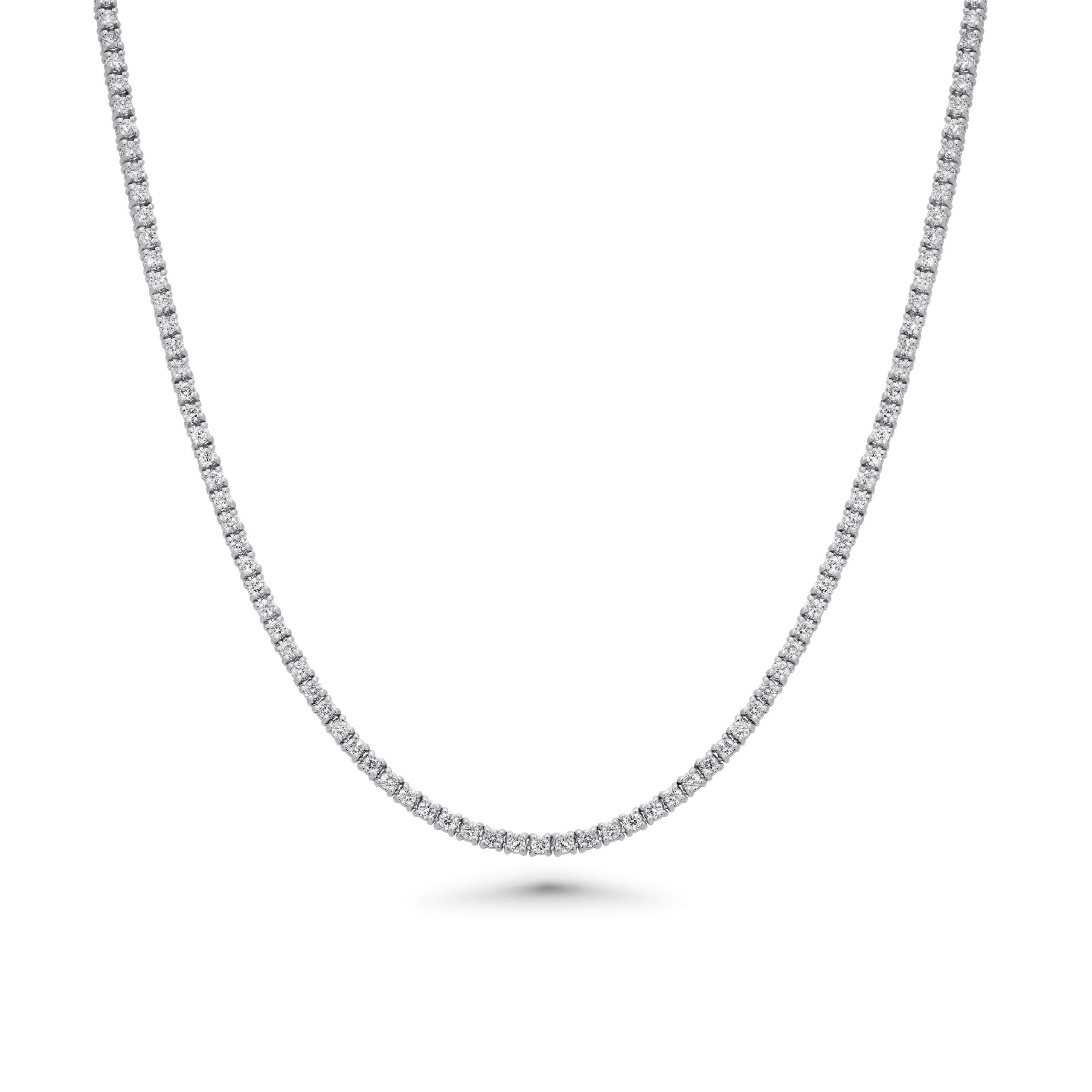 Revitalize your jewelry collection with our 14 karat white gold diamond tennis necklace, boasting a breathtaking 2.83cts. of round brilliant cut diamonds. Crafted to replace your existing pendant chain, this necklace seamlessly combines classic beauty with contemporary style. The continuous sparkle of meticulously set diamonds adds a touch of timeless elegance to your neckline. Elevate your everyday look or enhance a special occasion ensemble with the radiant allure of this stunning tennis necklace. Make a statement and redefine your personal style by upgrading to this exquisite piece that effortlessly captures the essence of modern luxury and sophistication.