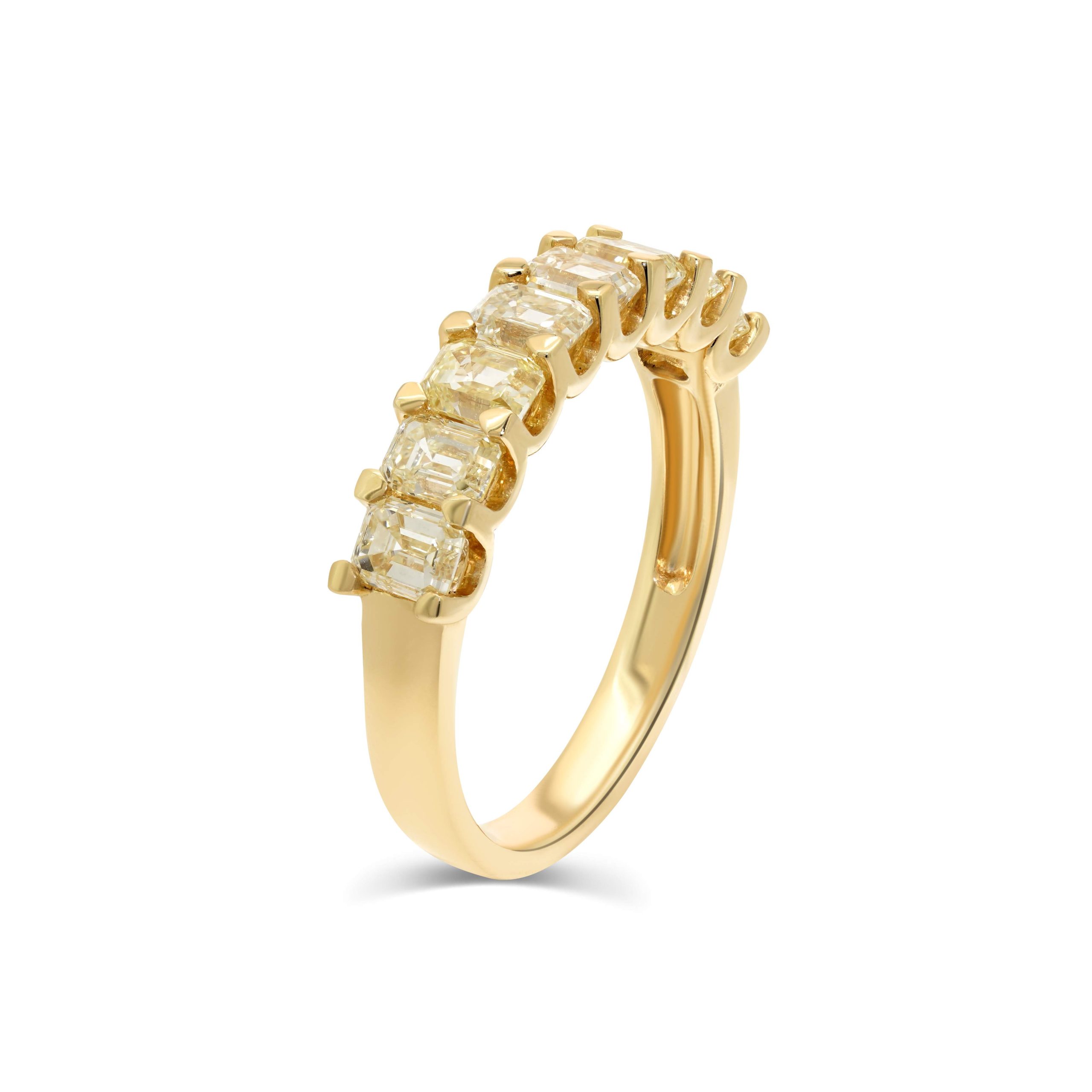 Unveil unparalleled beauty with our 14 karat yellow gold diamond band, showcasing 1.84cts. of mesmerizing emerald cut diamonds. This exquisite band radiates sophistication and brilliance, capturing attention with its timeless allure. Crafted to perfection, it seamlessly blends the warmth of yellow gold with the captivating sparkle of emerald cut diamonds, making it a symbol of enduring style and refined luxury. Elevate your jewelry collection with this statement piece that transcends trends and stands the test of time.