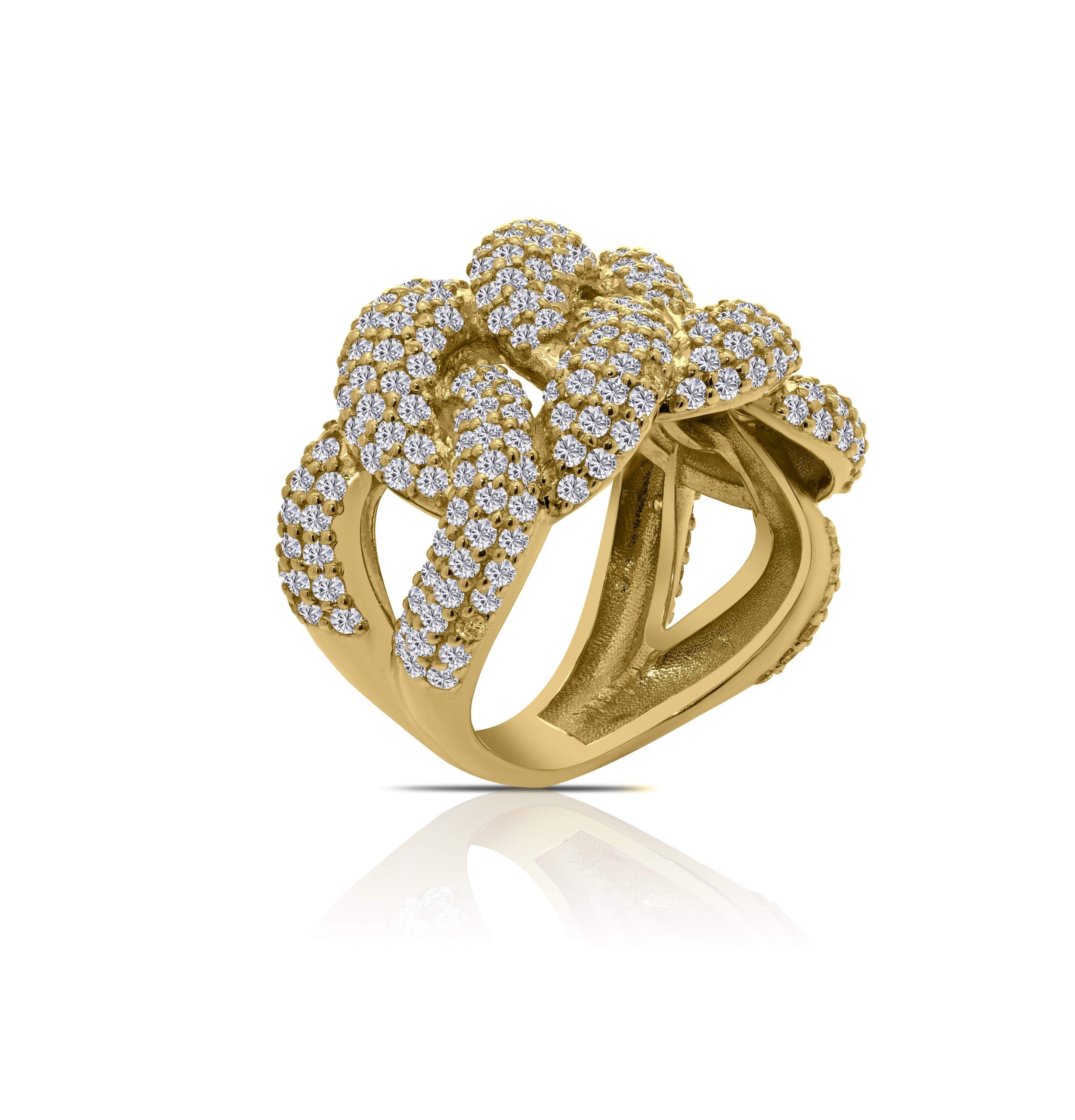 Introducing our striking 14 Karat Yellow Gold Diamond Cuban Ring, a dazzling statement piece that exudes opulence and charm. This exceptional ring boasts a mesmerizing total of 2.54cts. of round brilliant cut diamonds, meticulously set to create a captivating spectacle. The warmth of 14 karat yellow gold beautifully complements the brilliance of the diamonds, making this ring a perfect accessory for any occasion. Whether you’re looking to make a bold fashion statement or seeking an elegant touch for a special event, this ring is the ideal choice. Experience the timeless allure of yellow gold and the captivating sparkle of diamonds, making this ring the centerpiece of your jewelry collection.