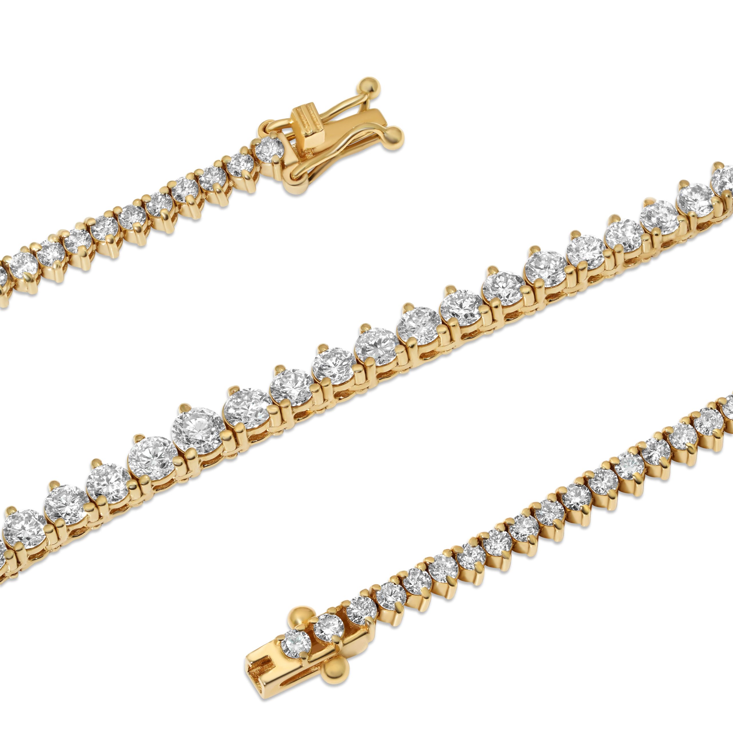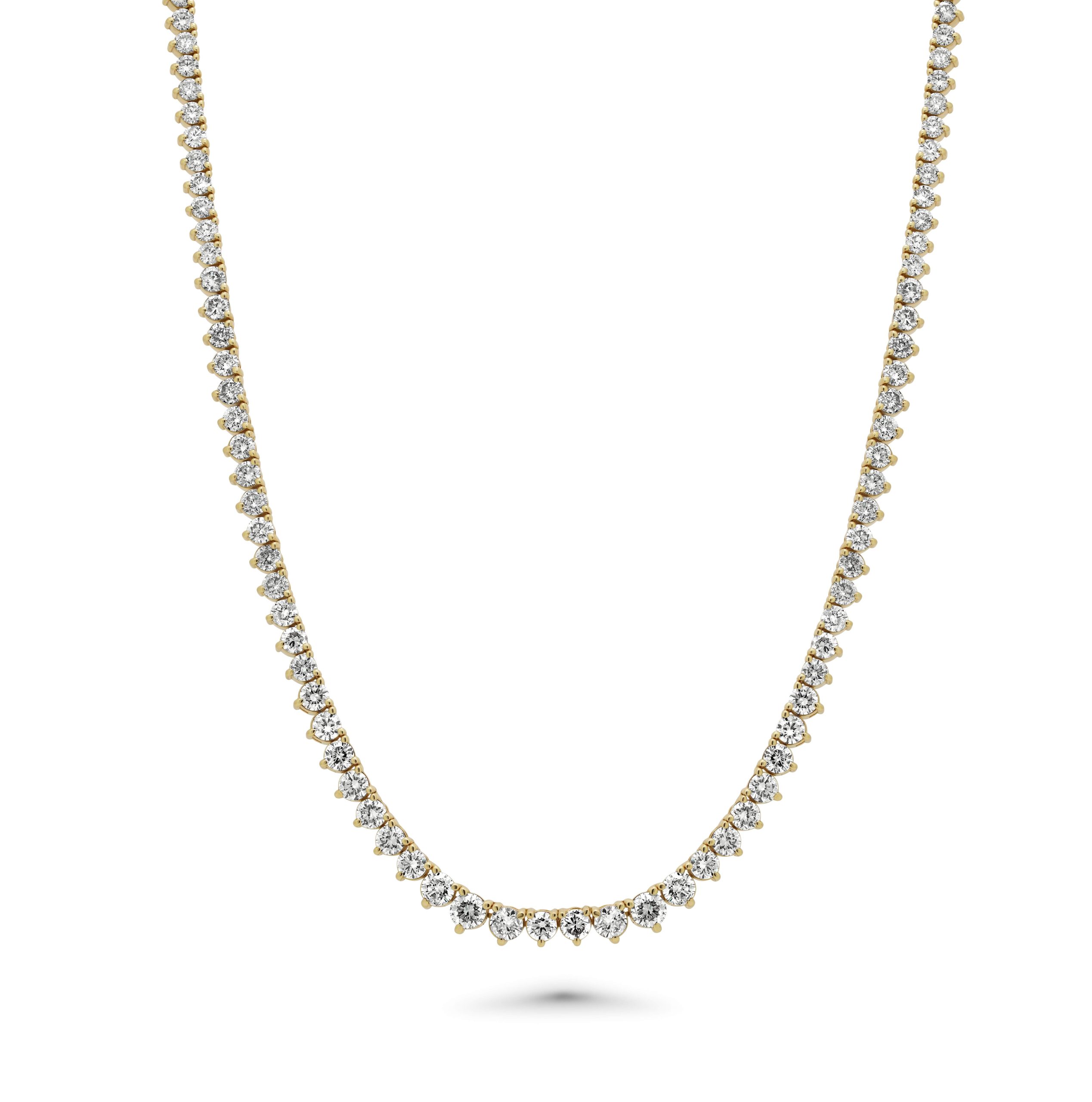 Introducing our 14 karat yellow gold martini set diamond tennis necklace, a masterpiece of elegance and grace. Adorned with 9.95cts. of meticulously set round brilliant cut diamonds, this necklace exudes sophistication with a touch of modern flair. The martini setting enhances the brilliance of each diamond, creating a seamless flow of radiance around your neck.Crafted in luxurious 14 karat yellow gold, this necklace is a timeless accessory that effortlessly elevates any ensemble. Make a bold statement with this exquisite piece, where classic design meets contemporary allure.