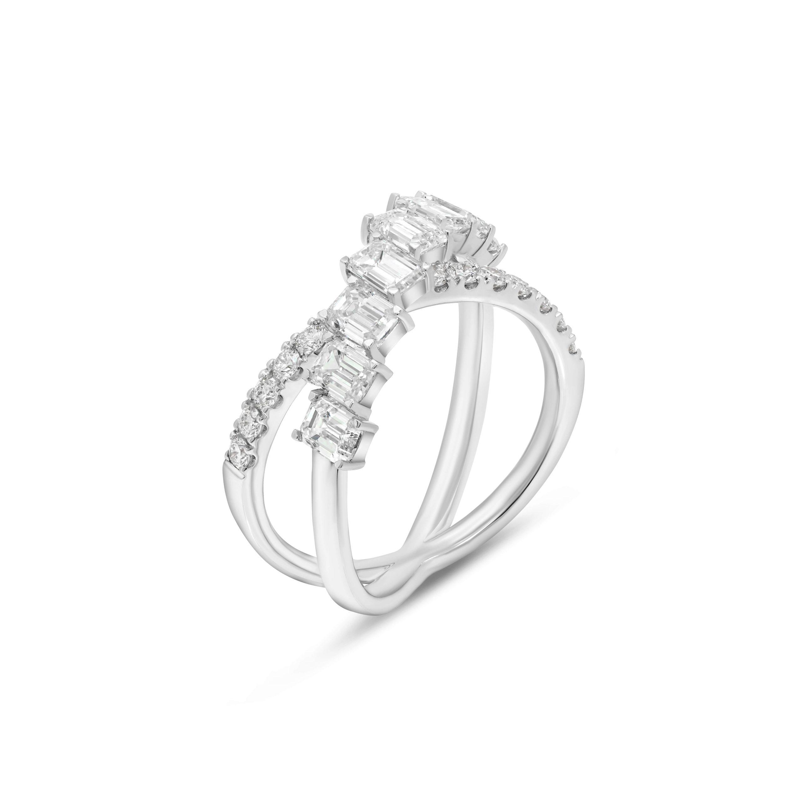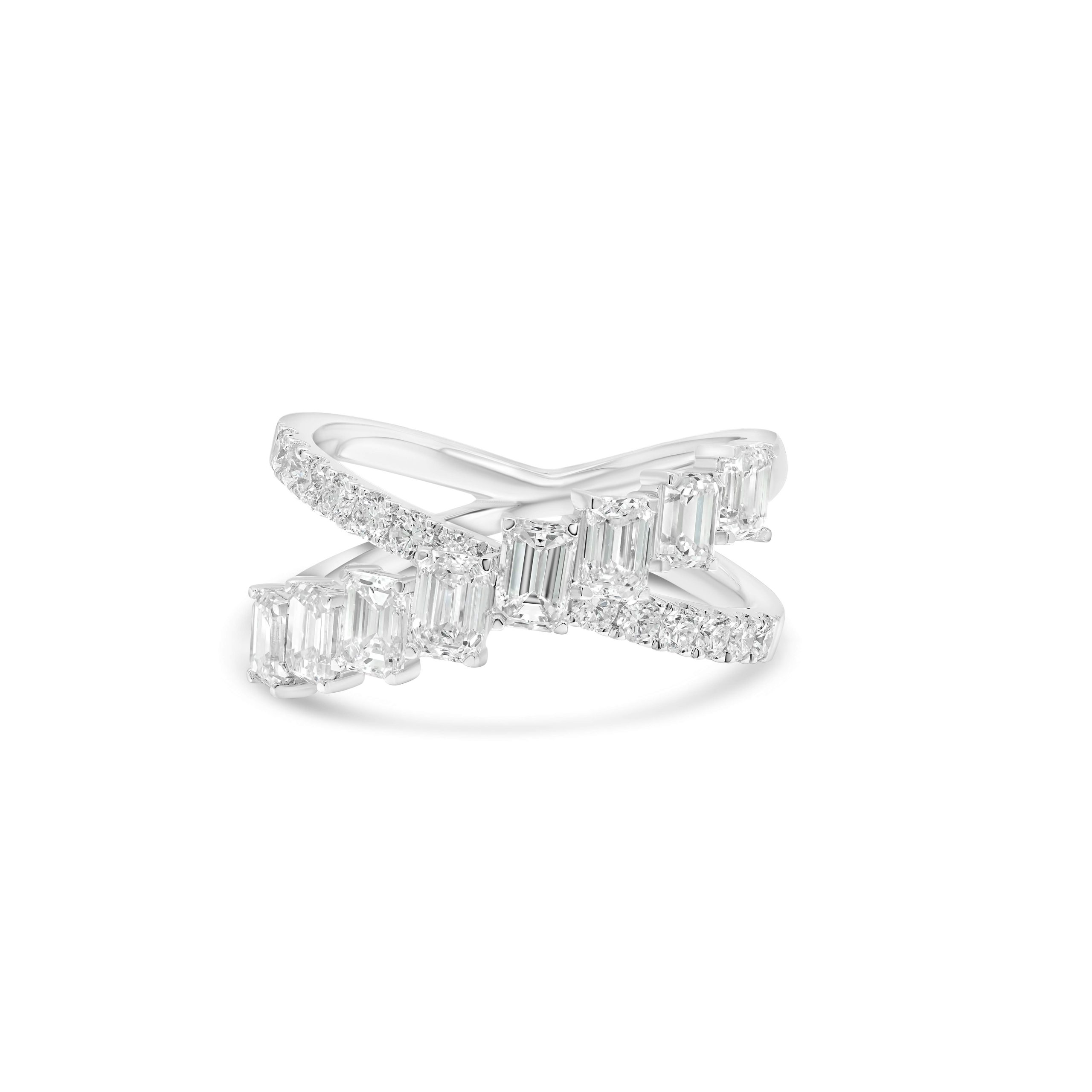 Discover the allure of our 18 Karat White Gold Crisscross Diamond Cocktail Ring–a true embodiment of sophistication and style. This stunning piece features a delicate dance of diamonds, with 0.38cts. of round brilliant cut diamonds and 1.83cts. of enchanting baguette cut diamonds. Set in an intricately designed crisscross pattern, this ring exudes modern elegance with a touch of vintage charm. Crafted to perfection, it’s a testament to the timeless allure of diamonds, showcasing their fire and brilliance like no other. Whether you’re stepping into a glamorous event or celebrating life’s special moments, this crisscross diamond cocktail ring is a symbol of refined taste and enduring elegance, making it the perfect statement piece for any occasion.