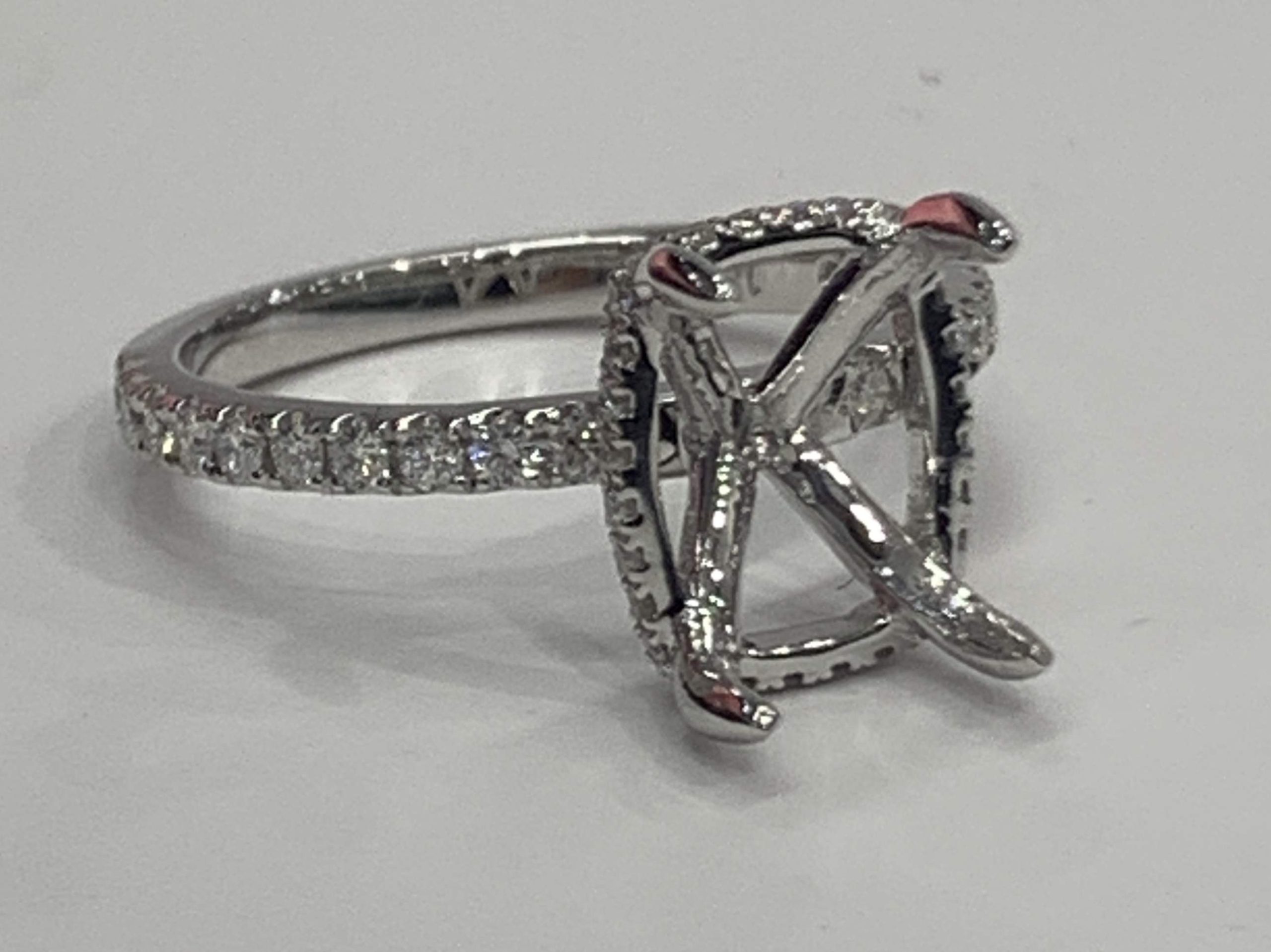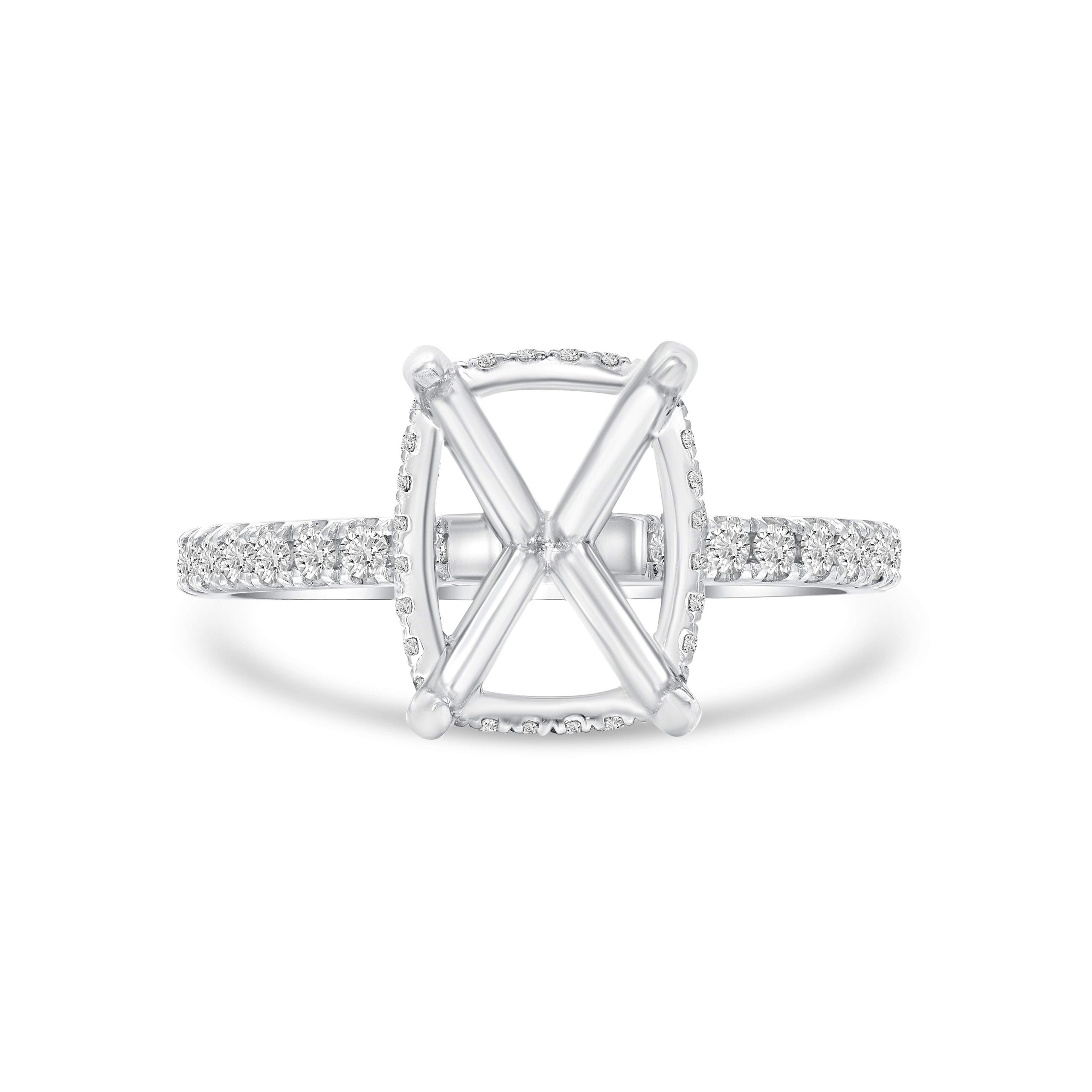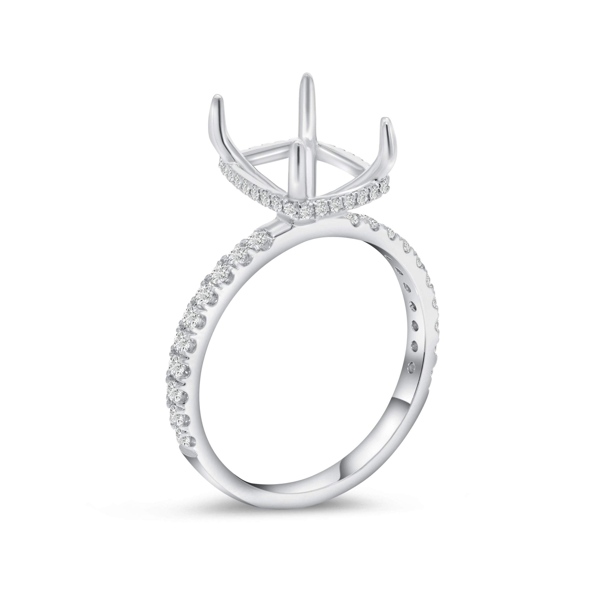 Introducing our 18 karat white gold diamond hidden halo setting–a masterpiece that marries sophistication with brilliance. Revel in the allure of .37cts. of meticulously crafted round brilliant cut diamonds. The concealed halo adds a touch of enchantment, making this setting a timeless choice for those who appreciate refined elegance. Elevate your jewelry collection with this exquisite combination of craftsmanship and sparkle, designed to capture attention and admiration.