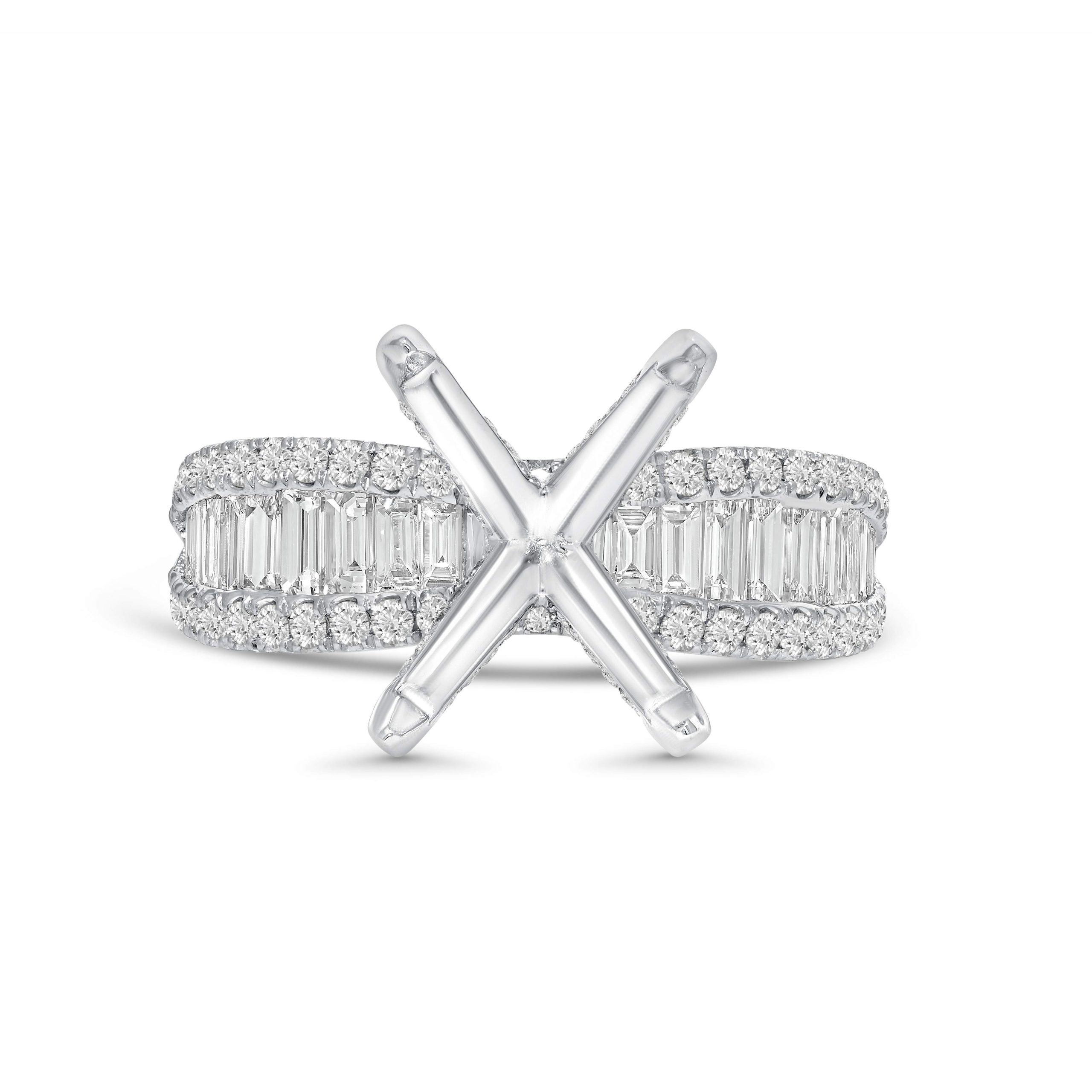 Indulge in luxury with our 18 karat white gold diamond setting,a masterpiece of sophistication and brilliance. Channel set baguette diamonds totaling .70cts. take center stage, flanked by .66cts. of round brilliant cut diamonds on either side. This meticulously crafted ring is a celebration of timeless beauty, making it the perfect statement piece for those who appreciate the finest in jewelry craftsmanship.