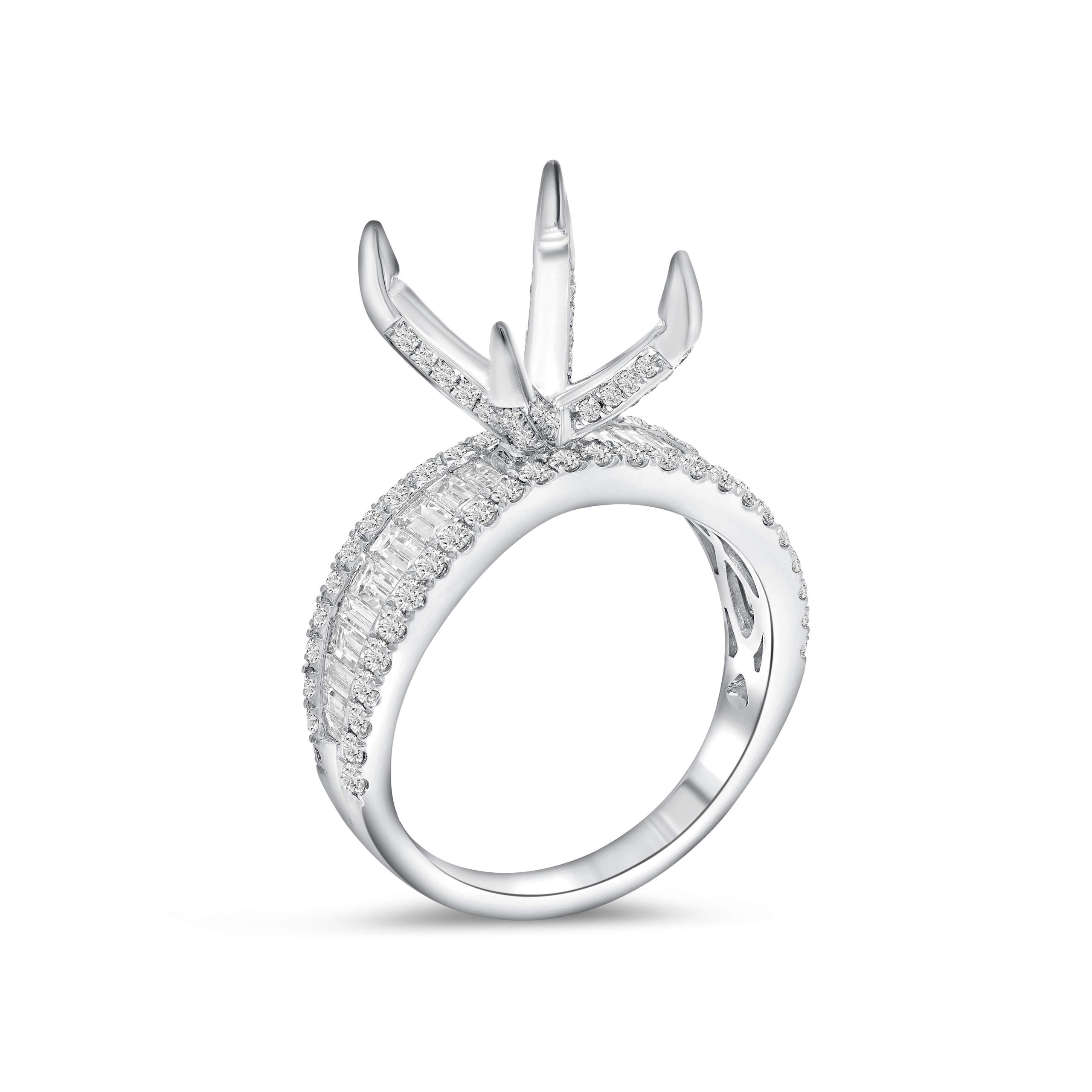 Indulge in luxury with our 18 karat white gold diamond setting,a masterpiece of sophistication and brilliance. Channel set baguette diamonds totaling .70cts. take center stage, flanked by .66cts. of round brilliant cut diamonds on either side. This meticulously crafted ring is a celebration of timeless beauty, making it the perfect statement piece for those who appreciate the finest in jewelry craftsmanship.