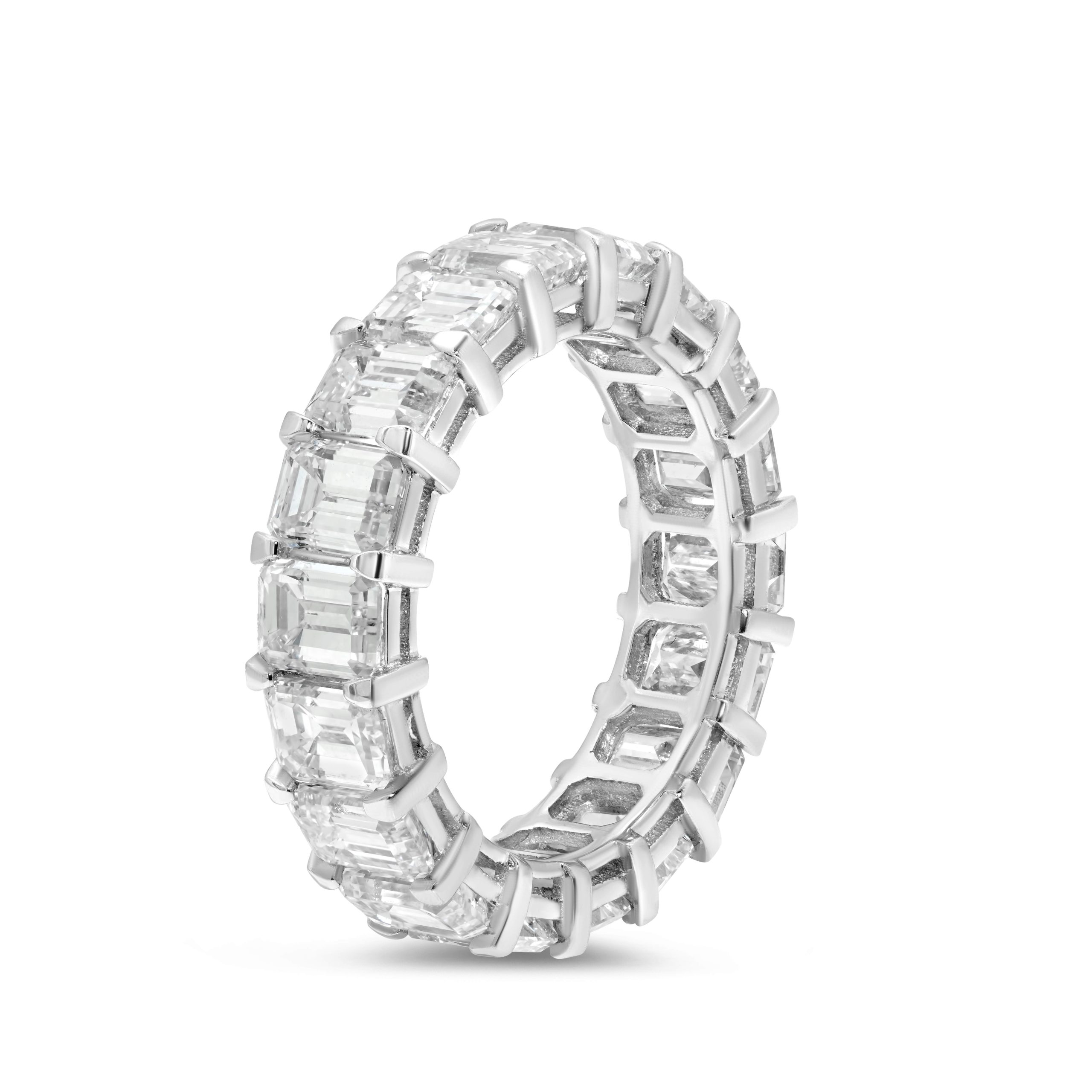Explore timeless elegance with our exquisite 18 karat white gold eternity band, adorned with a stunning array of 7.78cts. of meticulously crafted emerald-cut diamonds. Each diamond reflects unparalleled brilliance, creating a captivating symbol of everlasting love and sophistication. Elevate your style with this extraordinary piece that seamlessly blends luxury and grace, making it a perfect statement for life’s most cherished moments.