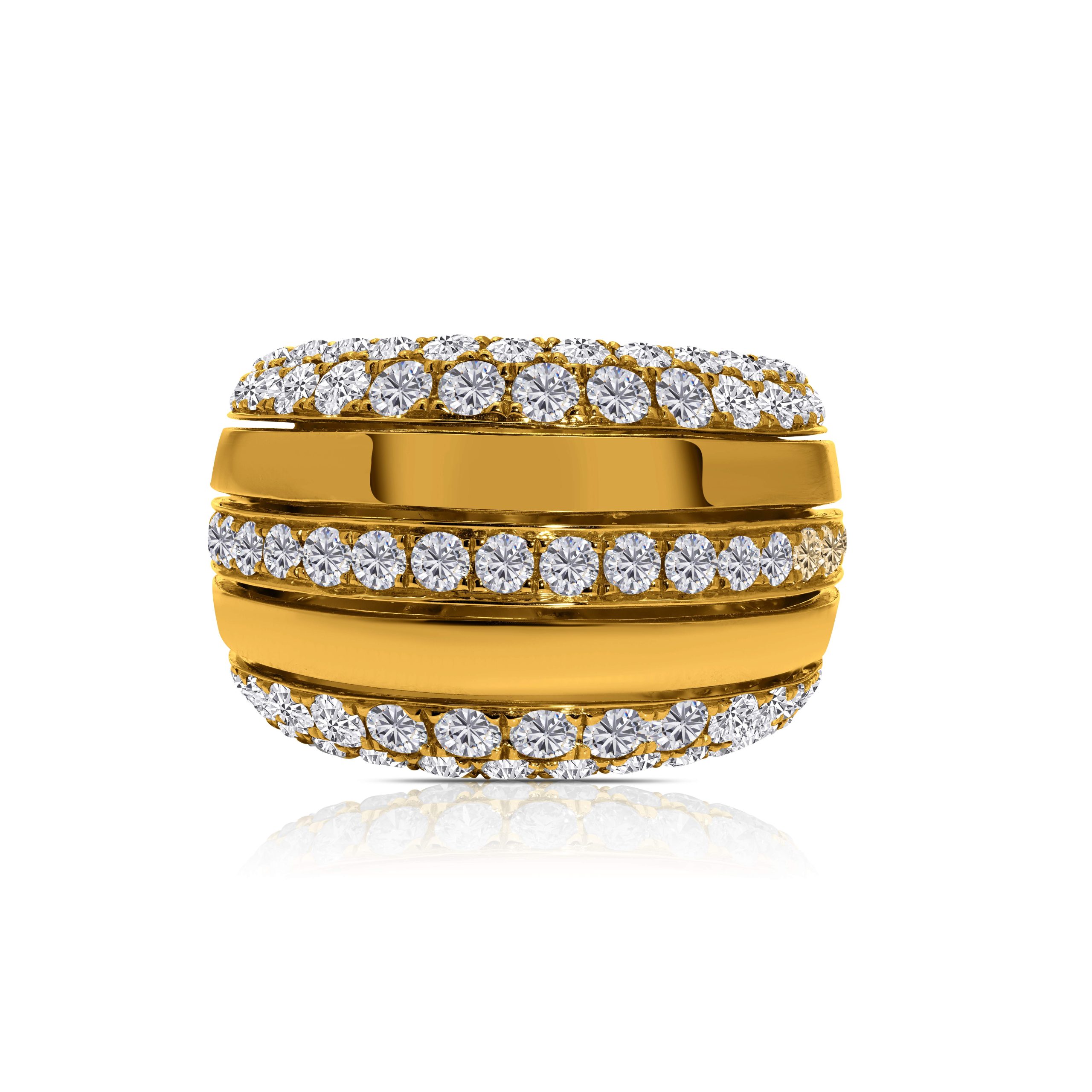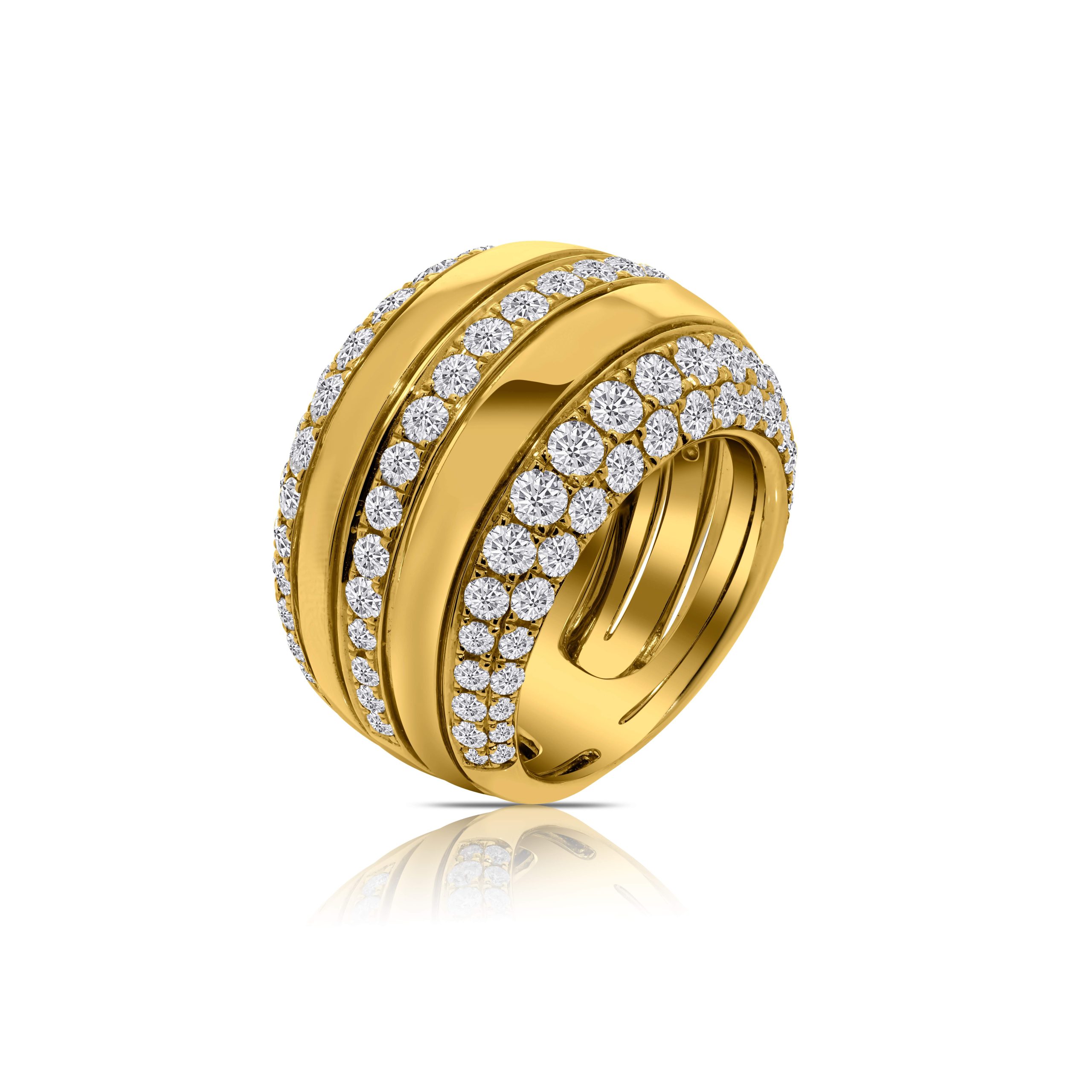 Introducing our modern masterpiece: an 18 karat yellow gold cocktail ring adorned with an astonishing 3.01cts. of round brilliant cut diamonds. This ring is a stunning fusion of contemporary style and timeless elegance, designed for those who appreciate the best of both worlds. Each diamond is meticulously set to create a dazzling display of brilliance, making this ring a true showstopper. Whether you’re attending a special event or simply want to elevate your everyday look, this ring is the perfect choice. Its bold design and the radiance of the round brilliant cut diamonds make it a statement piece that reflects your unique sense of style.Explore the captivating beauty of this modern 18 karat yellow gold cocktail ring and add a touch of sophistication and luxury to your collection today.